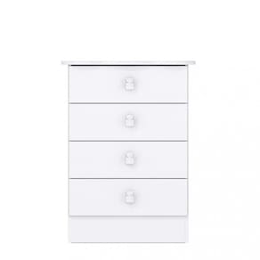 Características: 4 Gavetas 4 Puxadores em formato de urso Acabamento semi-brilho Corrediças telescópicas Estrutura em chapa de MDP de 15 mm Estrutura puxadores em Plástico Não possui pés Peso suportado nas gavetas 2 kg