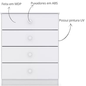 Com 4 gavetas espaçosas e corrediças metálicas, ela garante organização e fácil acesso às roupinhas e acessórios.