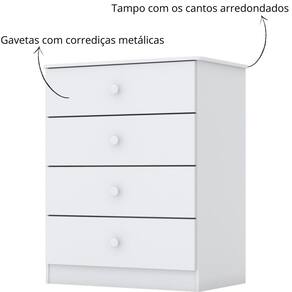 Com 4 gavetas espaçosas e corrediças metálicas, ela garante organização e fácil acesso às roupinhas e acessórios.