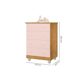 A Cômoda Infantil Lara é a peça-chave para um quarto de bebê estratégico, com soluções inteligentes, capaz de manter a organização de todo o cômodo e ainda otimizar espaço. Ela mantém o ambiente sempre em ordem, armazena grande parte do enxoval e o melhor: por servir de fraldário, traz muita praticidade para a vida dos papais! O móvel conta com quatro gavetas espaçosas, onde você pode guardar bodies, pijama, fraldinhas e tudo o que você precisar colocar em ordem, e uma porta com repartição. Produto Montado: Sim Acabamento da Gaveta: Pintura UV Altura dos Pés: 7 cm Altura Máxima dos Pés: 7.0000 Ambiente Principal: Quarto de Bebê codigo_ean: 7899825816179 Complexidade da Montagem: Alta: deve ser montado por um montador especializado Cor: Marrom/Rosa Cor do Produto: Marrom/Rosa Escala de Brilho: Fosco Gaveta com Chave: Não Itens Inclusos: 1 Cômoda, Kit Ferragens e Manual de montagem Manual de Montagem e Instalação: https://product-hub-prd.madeiramadeira.com.br/874568/documents/92ca688a-cd49-407c-b691-1c956ce0b46c1594124cOmodalara4gavetas.pdf Material da Gaveta: MDP Material do Fundo: MDF Material dos Pés: Plástico Material Principal: MDP Necessita Montagem: Sim Origem do Produto: Nacional Peso: 22,5 kg Peso Máximo por Gaveta: 7 kg Possui Espelho: Não Possui Nichos: Não Possui Pés: 04 Possui Portas: Não Possui Prateleiras: Não Possui Rodízio: Não Possui Trocador: Não Recomendações de Uso, Manutenção e Limpeza: Limpar com pano seco, manter em lugar livre de umidade, ao abrigo de exposição direta ao sol. Sapatas Niveladoras: Não Sistema de Montagem: Tampa, Pregos, Parafusos Suporta Até (kg): 25 kg Tipo de Corrediça da Gaveta: Metálica Simples Tipo de Puxador da Gaveta: Externo undefined: 874567 Ean: 7899825816179