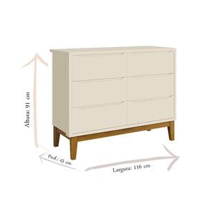 Cômoda Infantil 6 Gavetas Classic Areia Acetinado com Pés Madeira Reller