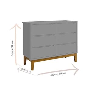 Cômoda Infantil 6 Gavetas Classic Cinza Acetinado com Pés Madeira Reller