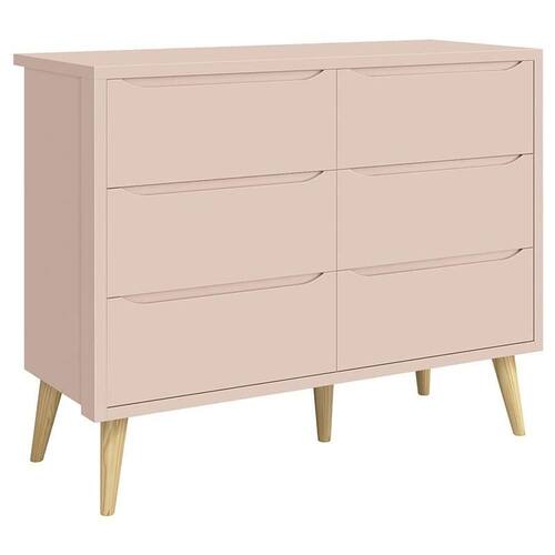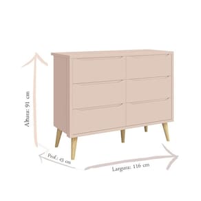 Cômoda Infantil 6 Gavetas Retrô Theo Rosa Acetinado com Pés Natural – Reller