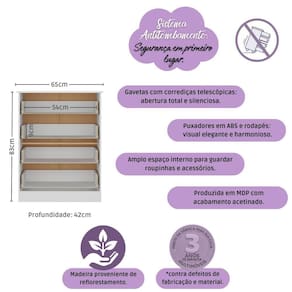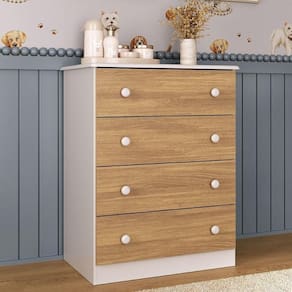 Cômoda Infantil 65cm Com 4 Gavetas Encanto Multimóveis Mp4427 Branco/madeirado Branco/madeirado Criada para acompanhar a doçura da infância, a Cômoda Infantil 65cm com 4 Gavetas Encanto Multimóveis MP4427 traz o equilíbrio perfeito entre estilo e utilidade. Suas gavetas espaçosas ajudam a manter o quarto sempre em ordem, enquanto o visual delicado transforma o ambiente em um espaço ainda mais acolhedor. Um móvel que cuida, decora e facilita. Diferenciais: - 3 anos de garantia contra defeitos de fabricação e material. - Produzida em madeira de reflorestamento (MDP 12/15mm) com acabamento acetinado (cerca de 20% de brilho): sustentabilidade e durabilidade. - 4 gavetas: amplo espaço interno para organizar roupinhas e acessórios. - Corrediças telescópicas: permitem a abertura total e o manuseio silencioso das gavetas. - Puxadores em ABS redondos e práticos. - Rodapé: visual harmonioso e facilidade na limpeza do ambiente. - Sistema antitombamento: proporciona segurança para o bebê e tranquilidade aos pais.