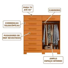 Tampo Amplo e Resistente: Suporta até 50 polegadas, permitindo que a cômoda seja utilizada também como suporte para TV, agregando funcionalidade ao móvel.