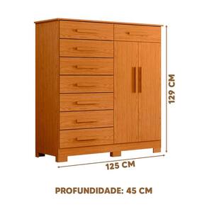 Dimensões da Cômoda:Largura 125 cm; Profundidade 45 cm; Altura 129 cm.