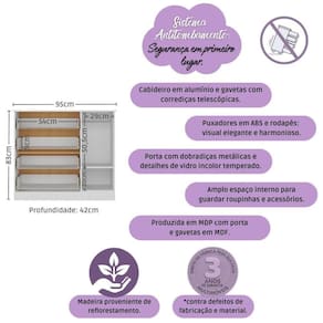 - Sistema antitombamento: proporciona segurança para o bebê e tranquilidade aos pais.