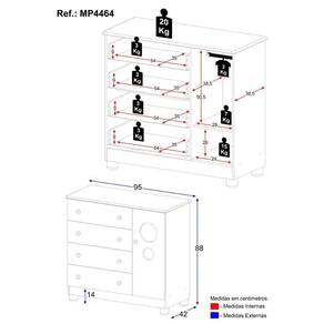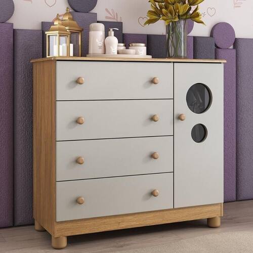 - 1 porta e 4 gavetas (frontais em MDF): amplo espaço interno para organizar roupinhas e acessórios.