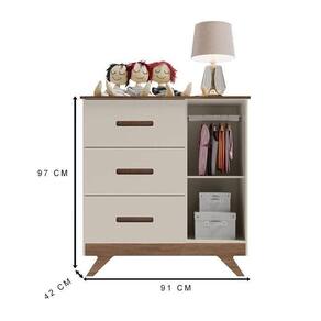 Cômoda Infantil Retro Maya Off White Carvalho Carolina