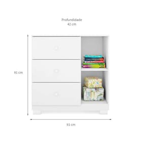 que tal a cômoda infantil ane? para quem busca funcionalidade e charme no quarto das crianças, a cômoda infantil ane é a escolha ideal! com design encantador e moderno, ela leva muita pde para o dia a dia, mantendo as roupinhas e acessórios sempre organizados - assim você ganha até mais tempo para curtir essa pessoa tão especial. além das 3 gavetas e da porta, essa peça também é fácil de ambientar e combina com diversos estilos de decoração, isso graças à tonalidade atemporal típica do universo infantil. ela vai ficar linda no quarto do seu pequeno, não vai? :) Marca: Modern