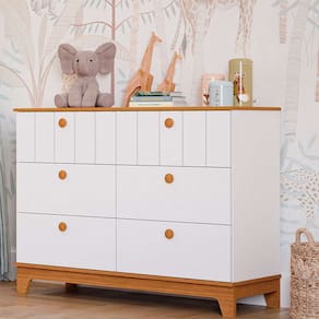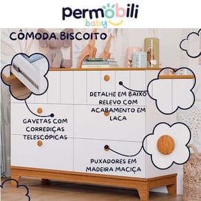 que tal a cômoda biscoito? além de ser o espaço de descanso, o quarto da criança também é o lugar em que ela se desenvolve, por isso precisa ser bem organizado. coômoda biscoito, você ganha uma grande aliada na arrumação, já que ela oferece 6 gavetas para armazenar tudo o que é preciso à rotina e também tem bom espaço de tampo para acomodar um abajur, brinquedos ou peças decorativas. de visual clássico que destaca a cor branca, a peça se encaixa bem em decorações do universo infantil, criando um dormitório todo bonito e charmoso. Marca: Modern