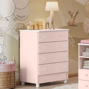 A Cômoda Infantil com 4 Gavetas Doce Sonho Rosa da Qmovi, é a escolha ideal para quem deseja um móvel que combina encanto e funcionalidade para o Quarto do Bebê.