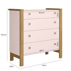 Características: Estrutura em MDP Acabamento em Pintura UV 04 Gavetas com corrediças metálicas Puxadores em Poliuretano (PU) Pés e Bordas em MDF 25mm Sistema anti-tombamento Estrutura produzida com materiais de alta qualidade Peso suportado nas gavetas: 5 kg distribuidos e sem impacto Peso suportado no tampo: 10 kg distribuidos e sem impacto