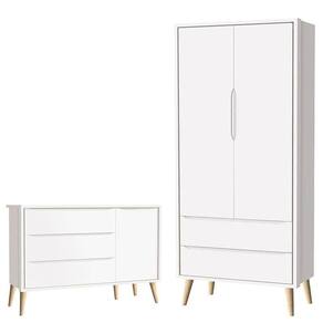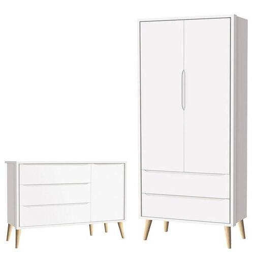 Cômoda Infantil com Porta e Guarda Roupa 2 Portas Theo Branco Acetinado Pés Madeira Natural ? Reller