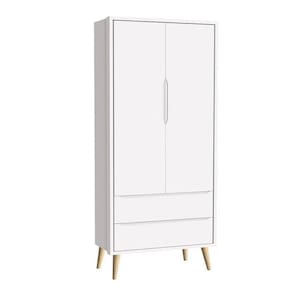 Guarda Roupa Infantil Theo 2 Portas Branco Acetinado com Pés Madeira Natural ? Reller