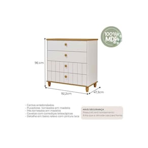 Material das Gavetas - Gavetas em MDF Tipo de Corrediça - c/ Corrediças Telescópicas Quantidade de Gavetas - 4 Gavetas Tipo dos Pés - Madeira Maciça Quantidade de Pés - 4 Pés
