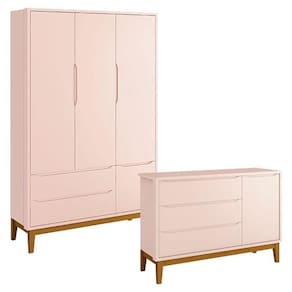 Cômoda Infantil e Guarda Roupa 3 Portas New Classic Rosa com Pés Madeira ? Reller
