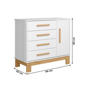 O(a) Cômoda Infantil Q Encanto 1 Porta 4 Gavetas Branco Acetinado - Qmovi é produzido em MDP na escala de brilho Semi-Brilho, e possui um grau de dificuldade de montagem: Médio.