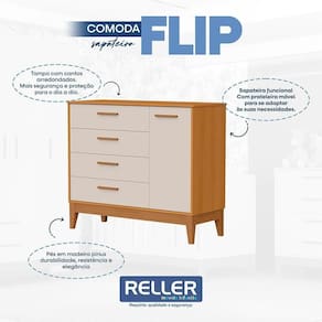 Cômoda Infantil Flip 1 Porta e 4 Gavetas - Reller Móveis