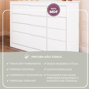 100% MDFA Cômoda com Fraldário é a escolha ideal para quem busca praticidade e organização no quarto do bebê. Com amplo espaço interno e design moderno, ela facilita a rotina diária e oferece conforto no momento da troca.