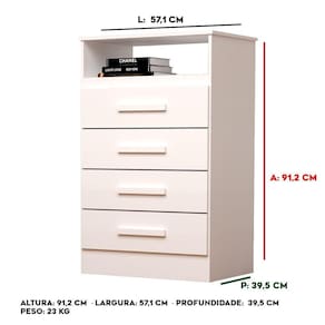 Cor: Branco | Largura: 57,1 cm | Acabamento: Pintura UV (Ultravioleta) | Altura: 91,2 cm | Profundidade: 39,5 cm | Quantidade de Gavetas: 4 | Marca: Linha Mobília | Possui Portas: Não | Tipo de Corrediças: Telescópicas | Gavetas suportam até: 5 Kg | Peso: 23 Kg | Garantia: 03 meses | Possui Gavetas: Sim | Necessita de Montagem: Sim | Modelo: Haiti | Material do Puxador: MDF revestido | Sistema de montagem: Convencional (Parafusos, minifix e cavilhas) | O produto suporta até: 30 Kg (distribuídos de forma adequada no mesmo) | Tipo de Garantia: Garantia do Fabricante | Tipo de Móvel: Cômoda | Requer Montagem: Sim | Quantidade de caixas de embalagem: 1 | Material: MDF | Inclui manual de montagem: Sim Cor: Branco