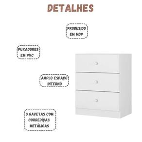 A Cômoda Louise combina elegância contemporânea com funcionalidade. Seu design sofisticado e acabamento impecável oferecem durabilidade e estilo atemporal para qualquer ambiente. Com 3 gavetas e puxadores delicados, é a escolha ideal para quem busca organização sem abrir mão do charme na decoração do lar.