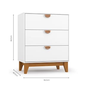 Cômoda Magia Infantil com 3 Gavetas – Praticidade e delicadeza para o quarto infantil A Cômoda Magia Infantil é a escolha ideal para quem busca funcionalidade sem abrir mão do charme na decoração do quarto do bebê ou da criança. Com 3 gavetas espaçosas, ela oferece o espaço necessário para organizar roupas, fraldas, acessórios e outros itens do dia a dia, mantendo tudo sempre à mão. Seu design compacto e encantador se adapta perfeitamente a ambientes menores, sem perder a elegância. Fabricada com materiais de qualidade, a Cômoda Magia une resistência, durabilidade e um acabamento delicado, pensado especialmente para compor quartos infantis com segurança e estilo.