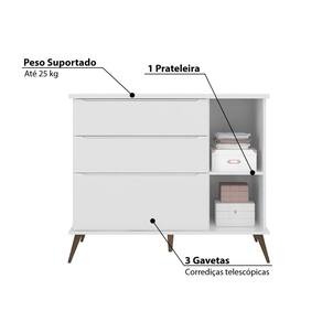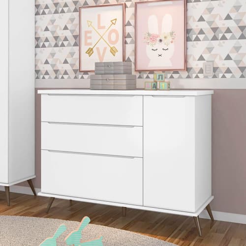 A Cômoda Infantil Melinda foi inspirada na decoração clássica, no intuito de trazer aconchego e elegância ao quarto. Uma peça capaz de se adequar com o tradicional ao contemporâneo, sempre com estilo. Sua capacidade interna é dos sonhos, com muito espaço para você guardar todas as roupinhas e objetos de forma organizada. Com 3 gavetas e 1 porta. Um móvel para trazer beleza e aconchego ao quarto das crianças.
