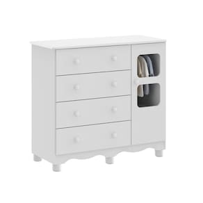 A Cômoda Uli New 1 Porta é um produto 100% MDF e possui pintura atóxica. Sua estrutura é fabricada em chapa de 12 mm, sendo o seu tampo em chapa de 15 mm. Os pés são injetados em plástico de alta resistência. Possui puxadores plásticos, cabideiro metálico e corrediças apoiadas metálicas. Sua porta possui detalhe com PETG cristal.