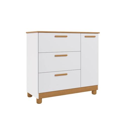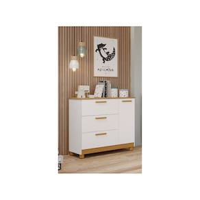 Produto em MDF, acabamento em pintura UV, e brilho semi- fosco, corrediças metálicas, puxadores e pés em ABS.