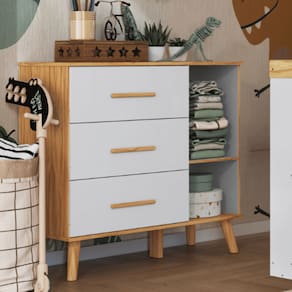 Com sua proposta funcional e visual neutro, a cômoda é perfeita para organizar roupinhas, fraldas, brinquedos e acessórios com praticidade, deixando o quarto do bebê sempre em ordem e cheio de estilo.