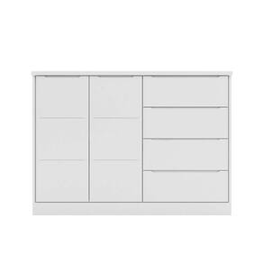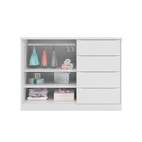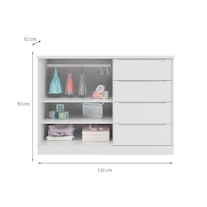 que tal a cômoda infantil pérola? para quem busca funcionalidade e charme no quarto das crianças, a cômoda infantil pérola é a escolha ideal! com design encantador e moderno, ela leva muita pde para o dia a dia, mantendo as roupinhas e acessórios sempre organizados - assim você ganha até mais tempo para curtir essa pessoa tão especial. além das 4 gavetas e 2 portas, essa peça também é fácil de ambientar e combina com diversos estilos de decoração, isso graças à tonalidade atemporal típica do universo infantil. ela vai ficar linda no quarto do seu pequeno, não vai? :) Marca: Modern