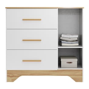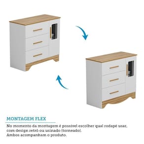 A Cômoda Infantil Popy Retrô Plus une charme e funcionalidade em um design encantador. Produzida em MDF com pintura UV atóxica, conta com 1 porta com janela em PETG Cristal/Acrílico, prateleira interna e 3 gavetas com corrediças telescópicas, garantindo abertura suave e segura. Os puxadores em MDF revestido e as duas opções de rodapés (usinados ou retos) proporcionam versatilidade na decoração. Compacta e espaçosa, suporta até 4kg por gaveta. Ideal para organizar com estilo o quartinho do bebê.