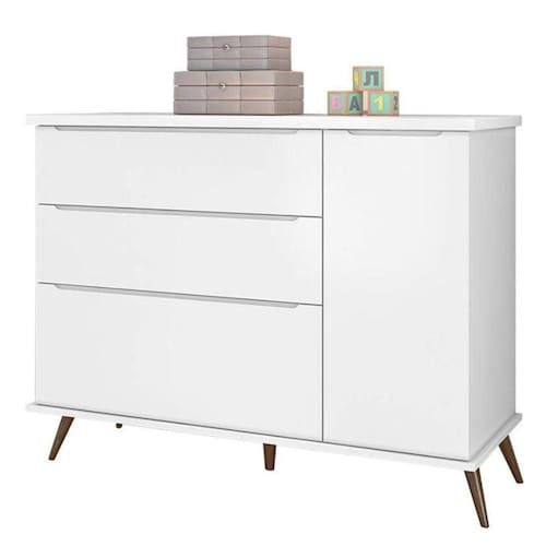 Cômoda Infantil Retrô Alice 1 Porta e 3 Gavetas - PR Baby A Cômoda Infantil Retrô Alice foi inspirada na decoração clássica, no intuito de trazer aconchego e elegância ao quarto. Ela possui 1 porta, 3 gavetas, cabideiro e uma prateleira, possibilitando organizar as roupinhas da melhor maneira possível. Um móvel para trazer beleza com o estilo retrô.