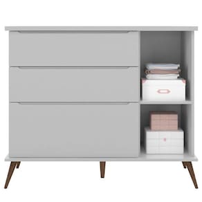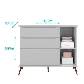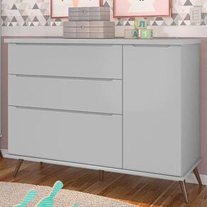 A cômoda infantil para quarto do bebê modelo retro com qualidade, lindo design e bom preço você encontra aqui, apresentamos mais uma linda opção Cômoda Infantil Retro Alice Cinza Acetinado com pés amadeirados, com amplo espaço você vai deixar todas as roupas e acessórios do seu bebê organizados com total conforto e comodidade confira!