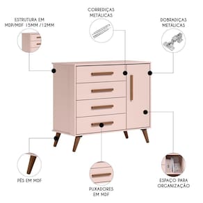A Cômoda Sapateira Infantil 4 Gavetas Retrô Rosa da Qmovi, é a escolha perfeita para quem procura um móvel encantador e altamente funcional para o Quarto Infantil.