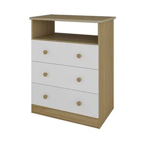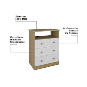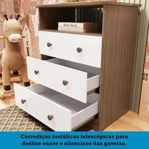 A Cômoda Infantil Smim da Peroba cor Branco com Carvalho referência COSMP.1.0.3, com puxadores em ABS, corrediças telescópicas, bordas laqueadas e sistema antitombamento. Com um design moderno e prático, a cômoda é a escolha ideal para quem busca qualidade e durabilidade. Com um acabamento em branco com Carvalho que se adapta perfeitamente a qualquer decoração. Seu design clean não só embeleza o espaço, mas também proporciona uma sensação de amplitude. Com três gavetas marcantes, você pode facilmente organizar roupas, brinquedos e acessórios, mantendo tudo ao alcance das mãos. Fabricada em 100% MDF, a Cômoda Smim oferece segurança e resistência, tornando-se uma escolha confiável para o quarto das crianças. O material é fácil de limpar e não possui arestas cortantes, garantindo um ambiente seguro para os pequenos exploradores.