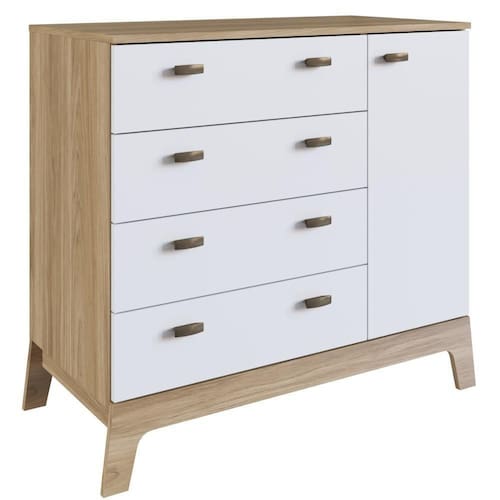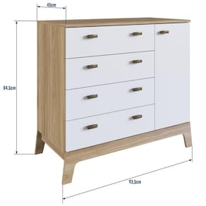 A Cômoda Itapuã com Branca 04 Gavetas e 1 Porta Linha Favo de Mel da Completa Móveis é versátil, prática e elegante, com características que a destacam. Ideal para o quarto do seu bebê. Gavetas que facilitam e otimizam o espaço e aconchego para o ambiente. Produto em MDP com corrediças metálicas e puxadores plásticos.