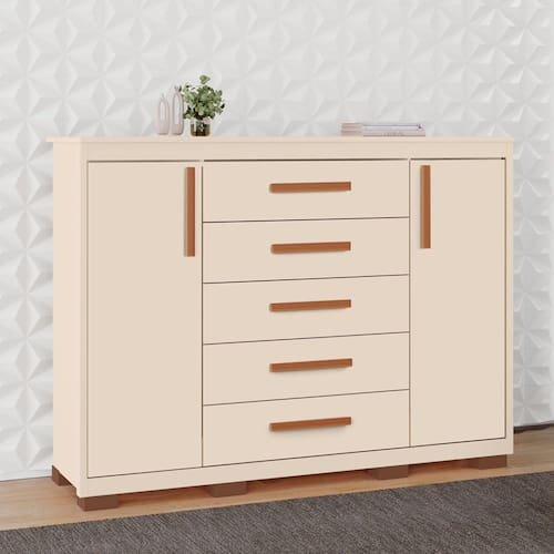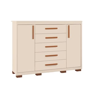 Apresentamos a Cômoda Ingrid! A Cômoda Ingrid é uma peça contemporânea com design moderno, ideal para quartos. Equipada com corrediças telescópicas, suas cinco gavetas deslizam suavemente para oferecer amplo espaço de armazenamento. Com duas portas, proporciona ainda mais opções para organizar roupas e acessórios. Sua estética clean se adapta facilmente a diferentes estilos de decoração, adicionando um toque de sofisticação ao ambiente. Uma escolha prática e elegante para completar o espaço do quarto com funcionalidade e estilo.