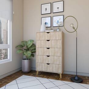 A cômoda Ipanema possui um visual dinâmico com 5 gavetas altas, adaptando-se para armazenar diversos itens da rotina. Com ótimo espaço de armazenamento e design marcante, ela se destaca em diversos projetos.