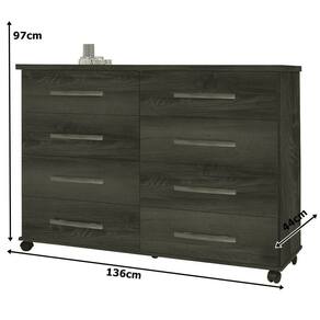 Cômoda Jade com 8 Gavetas Corrediça Telescópica e Rodinhas A Cômoda Jade com 8 Gavetas Corrediça Telescópica e Rodinhas é perfeita para organizar o seu dormitório. Com 08 gavetas, consegue acomodar muito bem as roupas que estão sobrando no seu guarda roupa, além disso ela possui rodízios que facilita muito a manuseio do mesmo. Existe uma infinidade de modelos de Cômoda disponíveis de acordo com a sua necessidade. Mas, antes de tudo é ideal medir o espaço livre para o móvel e conhecer os materiais em que são produzidos. Isso ajudará a efetuar uma compra perfeita. Além disso saber quem usará o móvel, desse jeito, você tem noção do espaço necessário. Normalmente, as mulheres tendem a usar mais espaço para guardar suas roupas, acessórios e sapatos. Então, nesse caso é ideal que a cômoda possua dimensões grandes. Como por exemplo a Cômoda Jade com 8 Gavetas Corrediça Telescópica e Rodinhas.\nMedidas\nAltura 97,8 cm\nLargura 136,5 cm\nProfundidade 44,5 cm\nCaracterísticas\nModelo Cômoda Jade\nTipo do produto Cômoda\nAmbiente Quarto\nCorrediças Telescópicas\nMaterial MDP/MDF\nGavetas 08\nMarca Móveis Primus\nPintura Ultravioleta com acabamento fosco\nPossui Pés Sim, possui rodízios\nGarantia 3 meses\nInformações Importantes\nObjetos decorativos que porventura apareçam na foto, não acompanham o produto. Não nos responsabilizamos pela montagem/instalação dos produtos.\nMontagens, desmontagens e instalações são responsabilidades do cliente. Indicamos que contrate uma empresa de montagem ou um montador de sua confiança.\nAlém disso, favor verificar se os pés e acessórios estão dentro do forro inferior do produto. Em suma, todas as informações divulgadas sobre o produto são de responsabilidade do Fabricante.\nAs cores do produto podem variar de acordo com o seu monitor, a iluminação do ambiente em que você está e até mesmo a sua percepção visual. Além da cor, pequenos detalhes e acabamentos podem não ficar evidentes na foto, por isso as imagens são meramente ilustrativas.