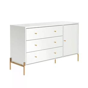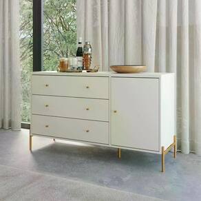 A Cômoda Casper é feita em madeira com estilo contemporâneo para compor a decoração do quarto de forma fácil, prática e organizada. Com 3 gavetas super espaçosas e conta ainda com uma porta com divisória interna que pode ser usada como sapateira para facilitar a organização e praticidade no quarto. Os puxadores são em Zamac e o acabamento em Verniz UV Touch com pés tubo em Aço Carbono.
