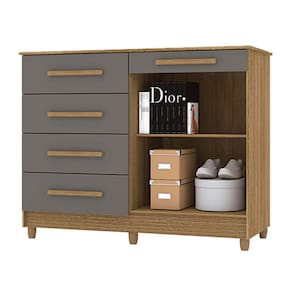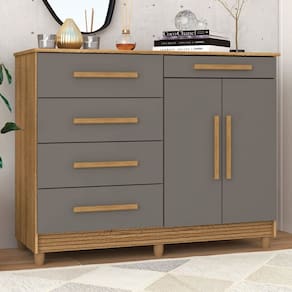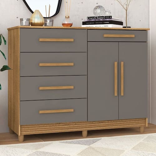 O(a) Cômoda Jasper 2 Portas 5 Gavetas Nature/Alasca - Loja é produzido em MDP na escala de brilho Impressão UV, e possui um grau de dificuldade de montagem: Médio.