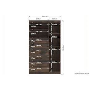 Dimensões(Cm): Comprimento(Profundidade): 40cm x Largura: 96cm x Altura: 163cm