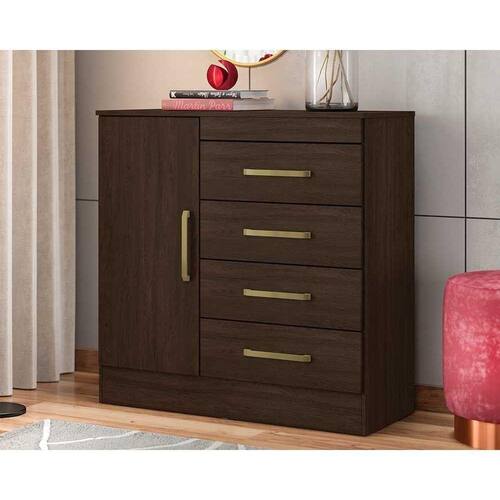 Cômoda de Quarto Montevideu c/ 1 Porta e 4 Gavetas Ébano Touch - Demóbile