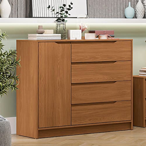 Design funcional com toque de sofisticação A Cômoda Kappesberg Ibiza é a escolha ideal para quem busca elegância e praticidade no ambiente. Com 105 cm de largura, conta com 1 porta e 4 gavetas bem distribuídas, oferecendo ótimo espaço para organização. Seu acabamento na cor Canela traz um toque aconchegante e moderno ao cômodo, combinando com diferentes estilos de decoração.