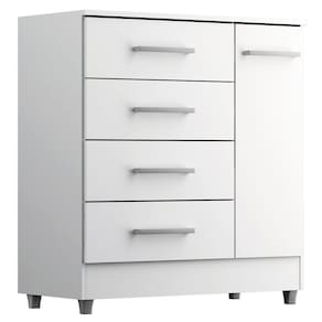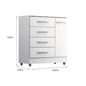 CÔMODA LAURA Com 4 gavetas e 1 porta com 1 prateleira, dispõe de um design sofisticado é própria para pessoas exigentes com organização. As gavetas possuem CORREDIÇAS METÁLICAS, fazendo assim com que a gaveta não caia na hora que você for utilizar, evitando acidentes com crianças. O móvel suporta pesos de até 7kg em suas gavetas e 20kg no tampo suficiente para acomodar televisores, além disso acompanha pezinhos para melhor limpeza e durabilidade do produto. As gavetas são espaçosas e comportam um bom volume de roupas e acessórios em seu interior. Possui acabamento Touch Alto-Relevo ou Alto Brilho UV e Semibrilho parte interna. Tem um design moderno que ao mesmo tempo atende muito bem as reais necessidades de uma ou duas pessoas.Altura 0,90m x Largura 0,825m x Profundidade 0,40m x Peso 28kgNão nos responsabilizamos pela montagem ou instalação do produto. Sugerimos a contratação de um serviço terceirizado de montagem ou de algum profissional experiente de sua preferencia.Imagem meramente ilustrativa