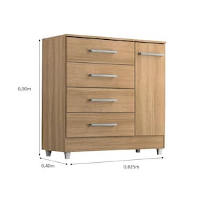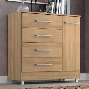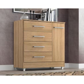 Com 4 gavetas e 1 porta com 1 prateleira, dispõe de um design sofisticado é própria para pessoas exigentes com organização. As gavetas possuem CORREDIÇAS METÁLICAS, fazendo assim com que a gaveta não caia na hora que você for utilizar, evitando acidentes com crianças. O móvel suporta pesos de até 7kg em suas gavetas e 20kg no tampo suficiente para acomodar televisores, além disso acompanha pezinhos para melhor limpeza e durabilidade do produto. As gavetas são espaçosas e comportam um bom volume de roupas e acessórios em seu interior. Possui acabamento Touch Alto-Relevo ou Alto Brilho UV e Semibrilho parte interna. Tem um design moderno que ao mesmo tempo atende muito bem as reais necessidades de uma ou duas pessoas.