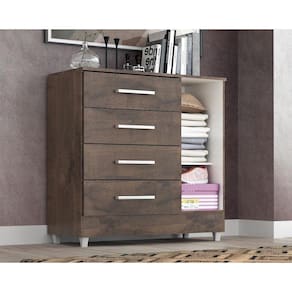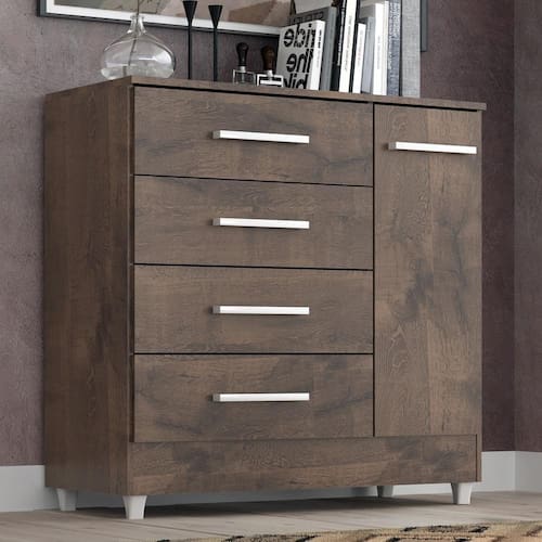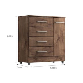 A cômoda Laura com 4 gavetas e 1 porta é um móvel versátil e prático projetado para oferecer espaço de armazenamento para roupas, acessórios e outros itens pessoais. Com suas gavetas e portas, oferece diferentes opções de organização. Além das gavetas, a cômoda Laura possui duas portas que podem ser abertas para revelar um espaço interno com 1 prateleira para guardar itens adicionais e contém uma superfície superior plana, que pode ser usada para colocar objetos decorativos, como vasos, porta-retratos ou Televisão. É importante verificar as dimensões da cômoda Laura antes da compra para garantir que ela se ajuste adequadamente ao espaço disponível em seu quarto ou ambiente desejado. Certifique-se de seguir as instruções de montagem para uma montagem correta e segura.