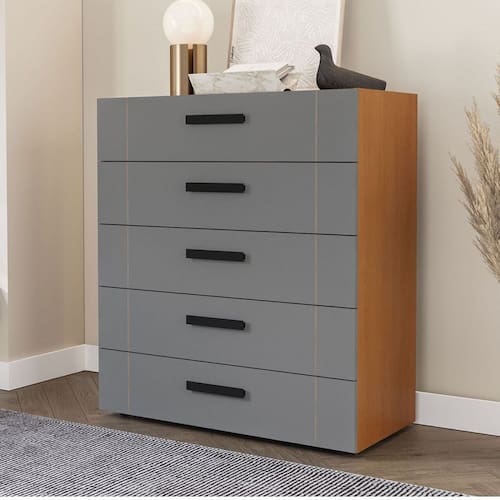 O(a) Cômoda Lisboa 5 Gavetas Freijó/Cinza - Politorno é produzido em MDF e MDP na escala de brilho Semi-Fosco, e possui um grau de dificuldade de montagem: Médio.